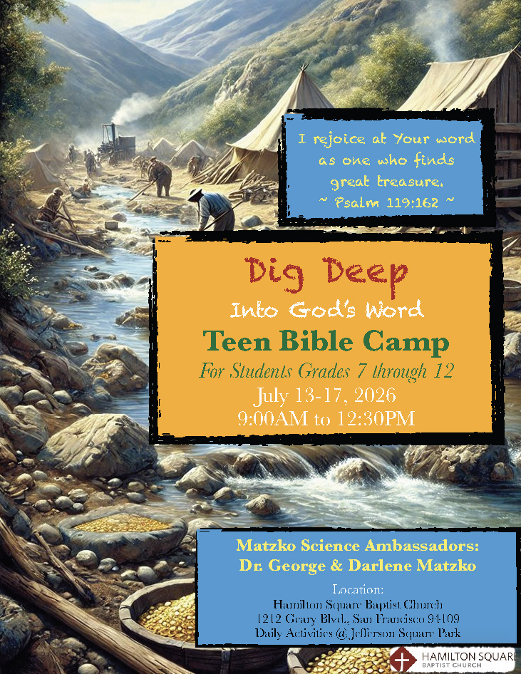 Your day will start on location with a lesson from God's Word packed with spiritual truths needed for today. Then enjoy science presentations conducted by the Matzkos -Science Ambassadors to explore God's amazing world and then journey to a near-by park for fun activities and snacks. End your fun-filled day back at the church.